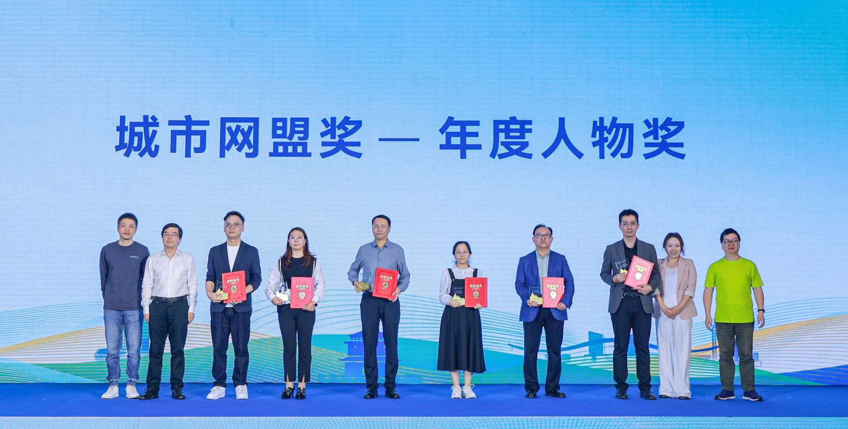 長江網戰略發展部總監張祥(左三)榮獲“2023年度中國城市網盟獎”年度人物獎。青島新聞網 供圖